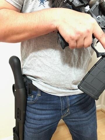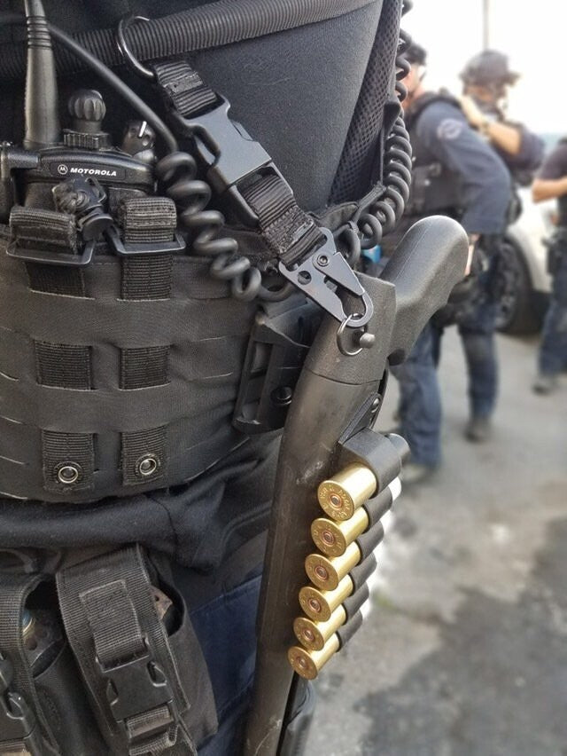 The Stratus Support System all new Shockwave 590 Pin Combo. Pin replaces the rear trigger pin on the Shockwave 590 12 gauge. (Also works on any 500/800 series & the Mossburg 88 12 gauge) The knuckle can be attached to the left or right side of weapon. The GEN2 Holster attaches to MOLLE or via belt. The holster accepts the knuckle and keeps the weapon secure while your hands free and is instantly deployable. A breachers favorite or from home defense.